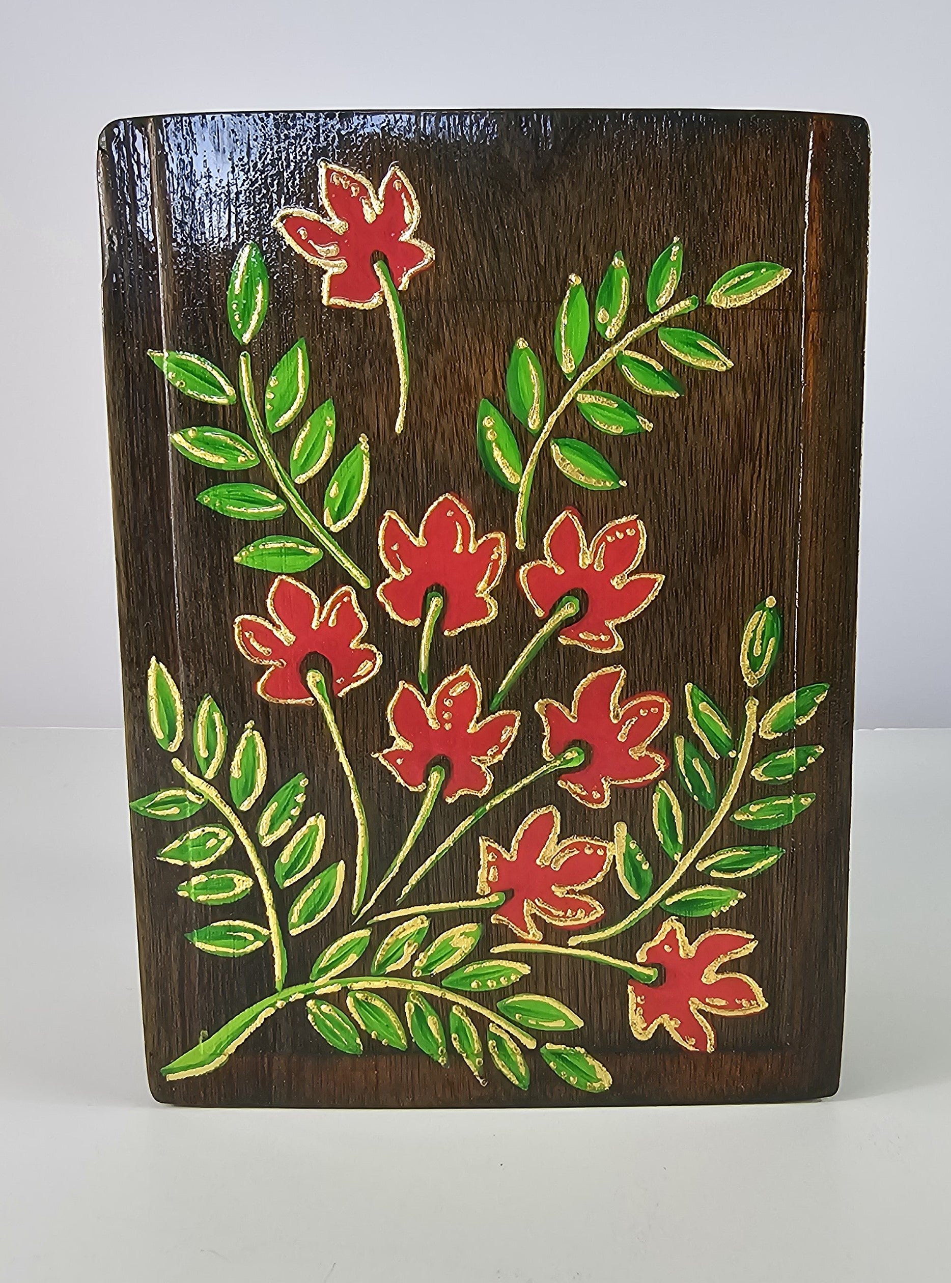 From sturdy cigar storage to a charming floral haven. This wooden box has been upcycled and adorned with hand-painted flowers, so you can stash your trinkets, jewelry, or even your favorite rolled up treasures.