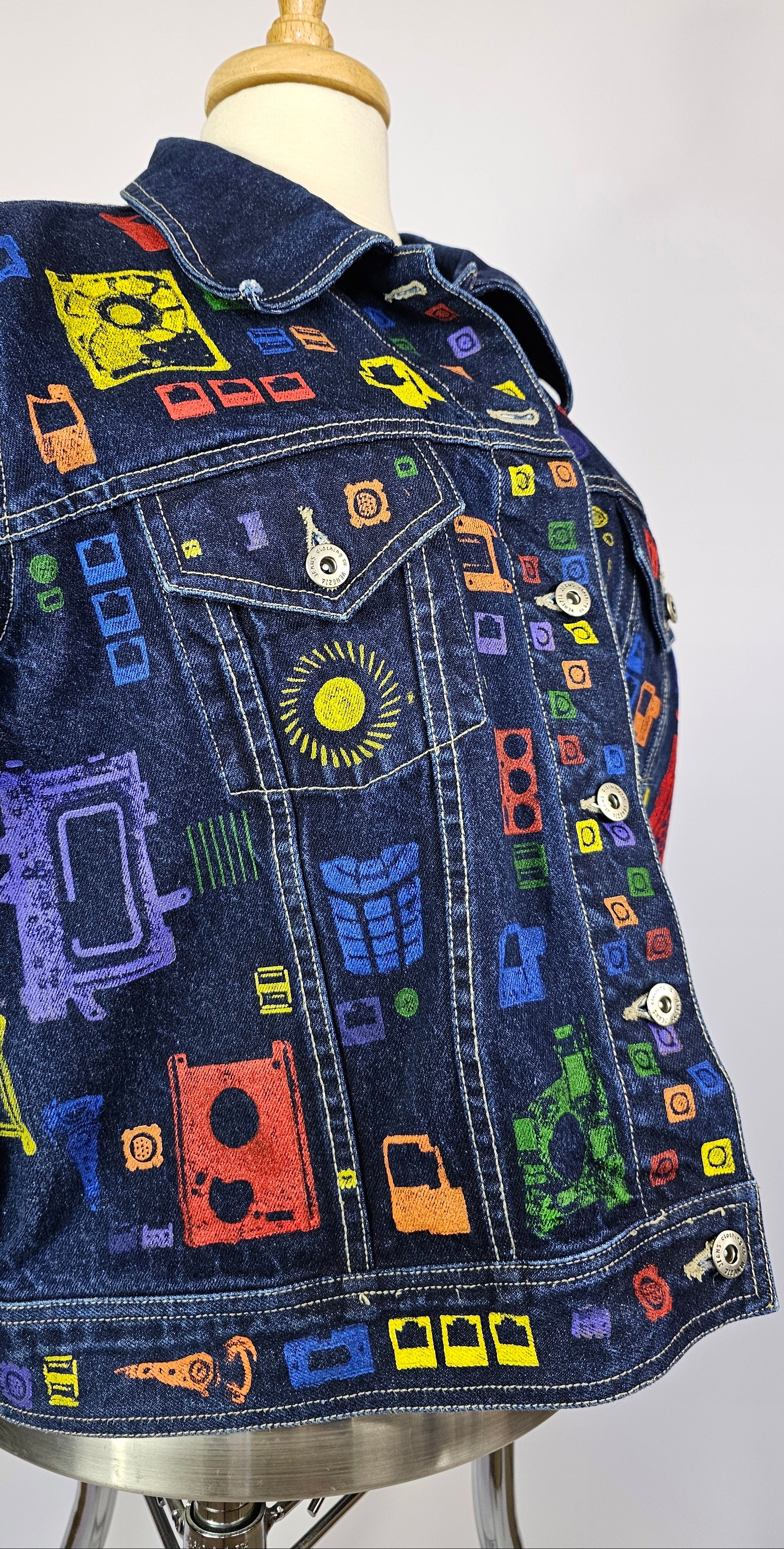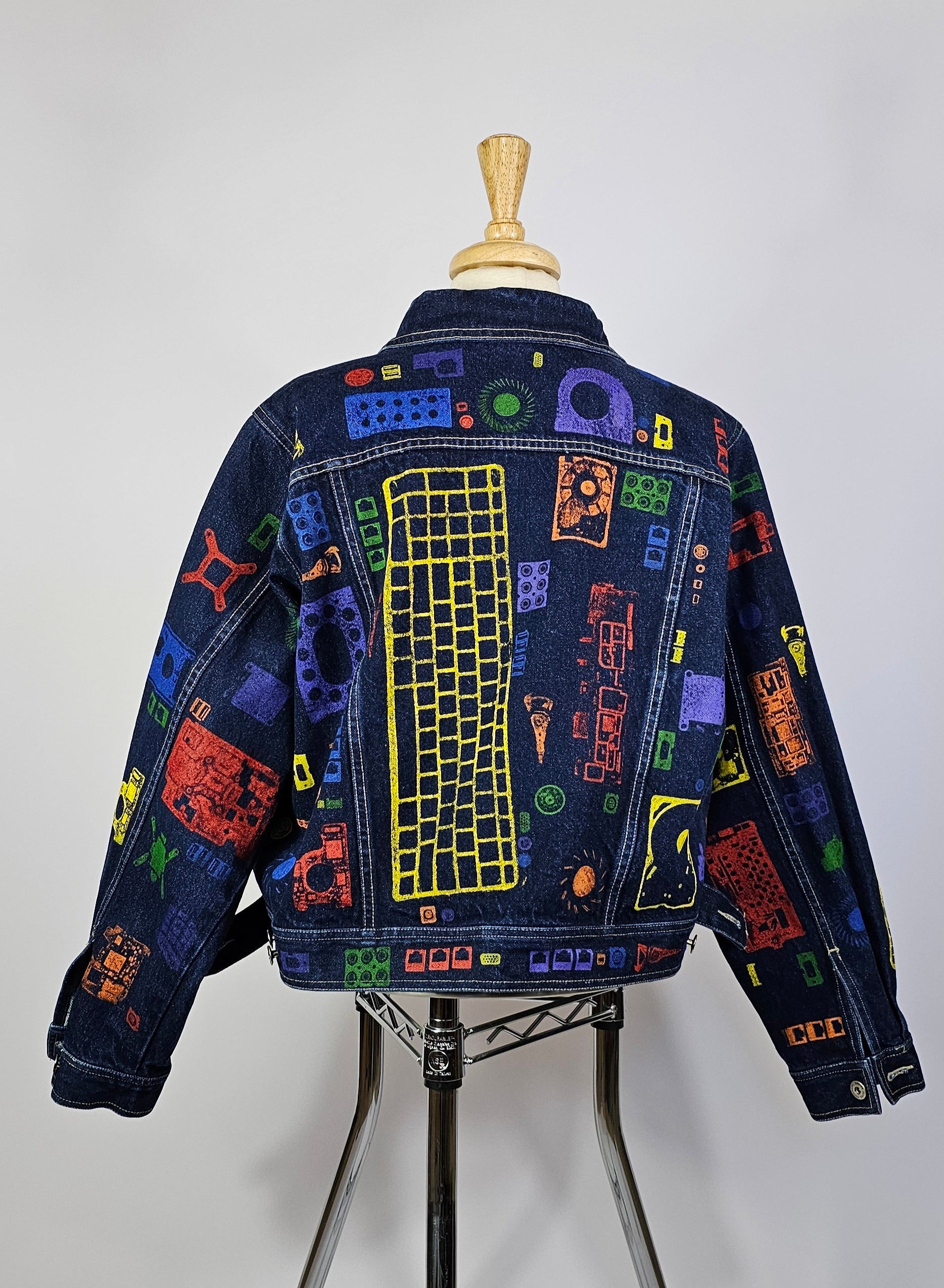 A new meaning to the electromagnetic spectrum. Recycled computer and electronic parts are used to create this vibrant, mechanical pattern, giving us an x-ray view into the technology around us.